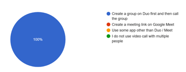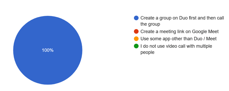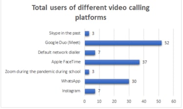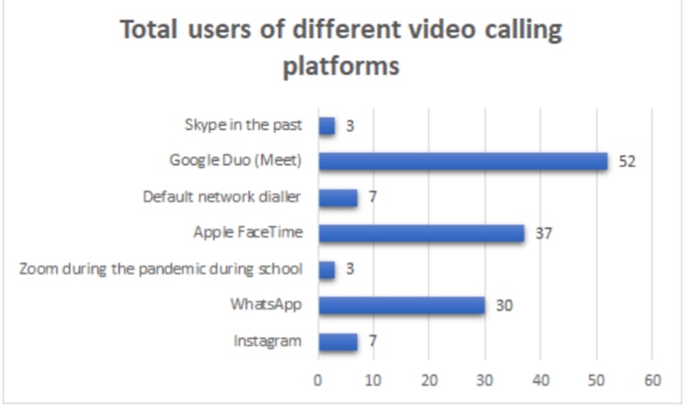 1. User Preference: Google Duo consistently ranks as one of the top choices for personal video calls, highlighting its user-friendly design and established user base. Out of all the participants, 62% use Google Duo as their top 2 choice of apps for video calling.