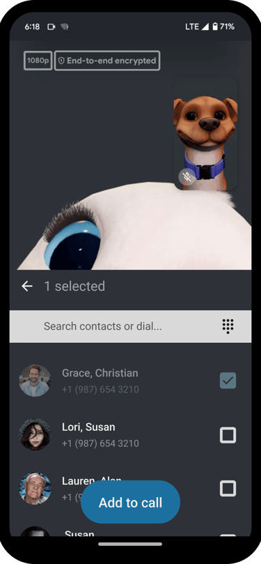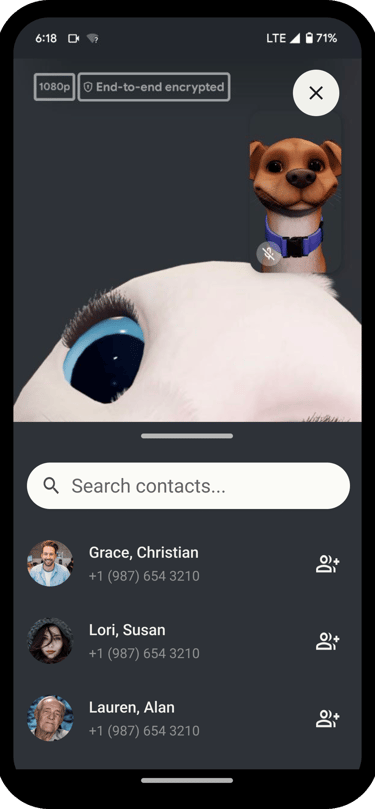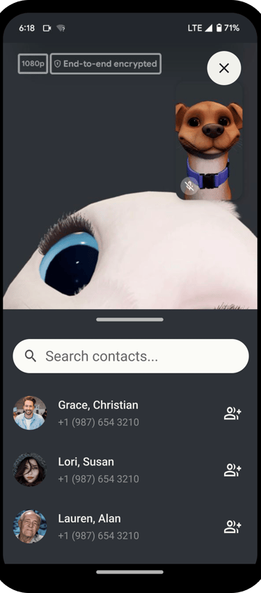Add Participant button near the bottom of the screen - follows Duo group call UX.